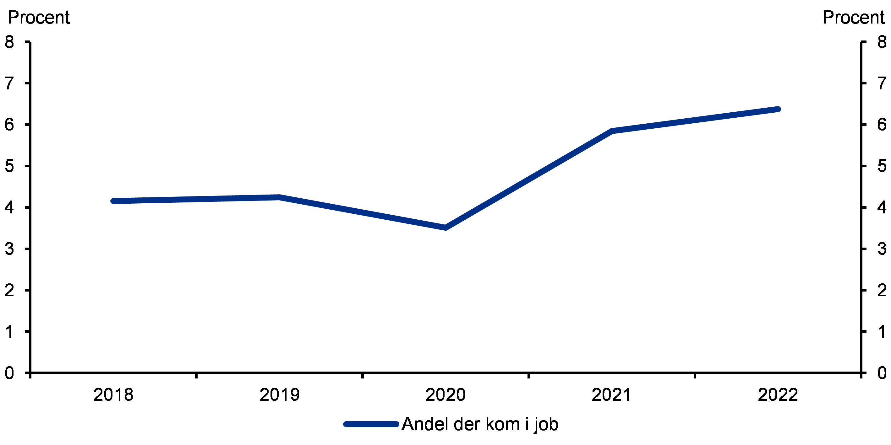 I løbet af 2022 kom over 4.000 udsatte ledige i job. Det svarer til 6 procent af alle udsatte ledige ved indgangen til 2022, jf. figur 1. I løbet af årene mellem 2018 og 2020 kom cirka 4 procent af de udsatte ledige i arbejde, og stigningen i 2022 udbyggede den tendens, der var startet i 2021.
